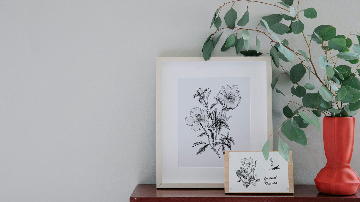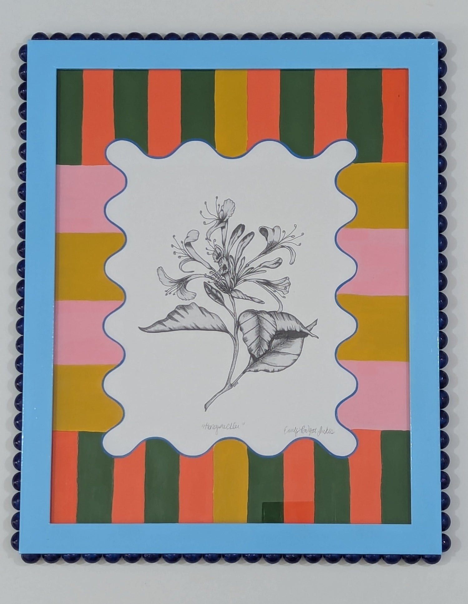 These handmade frames with prints are inspired by women artists known for their bold use of color and flowers. Each piece pairs a vibrant abstract frame with a delicate floral drawing, celebrating nature’s beauty. From Georgia O'Keeffe’s modern floral compositions to Frida Kahlo’s expressive style, and the work of Louise Abbema, Polly Apfelbaum, Alice Bailly, and Yayoi Kusama, these frames honor the innovative women who redefined art through color and nature.